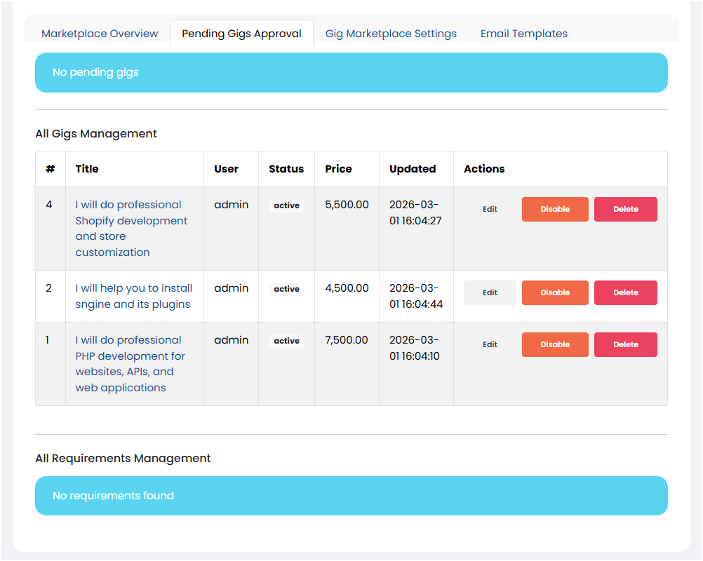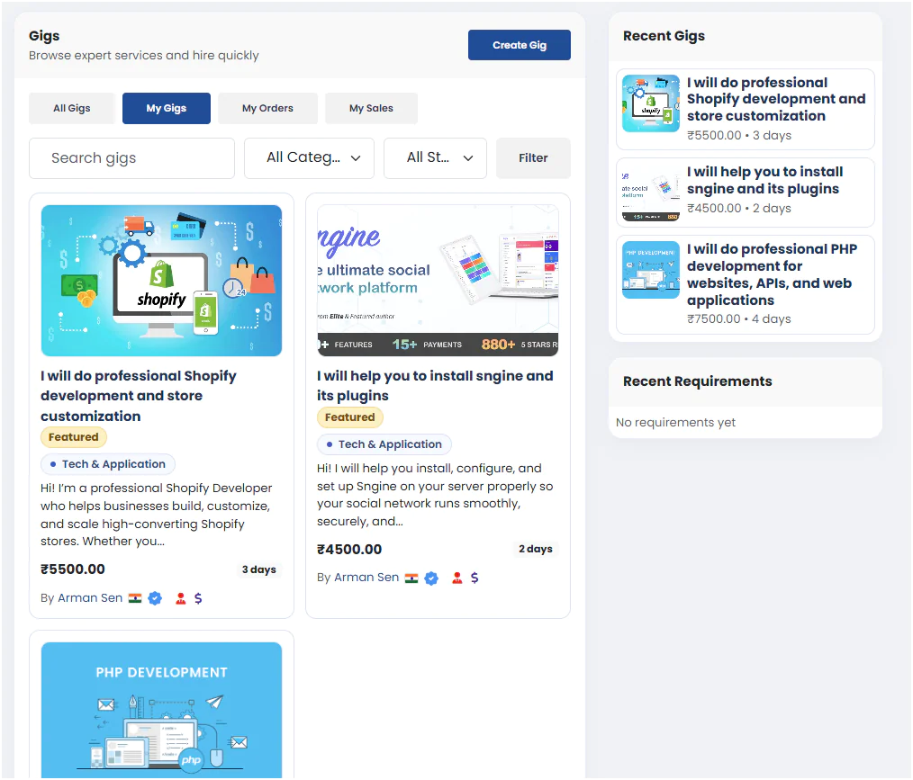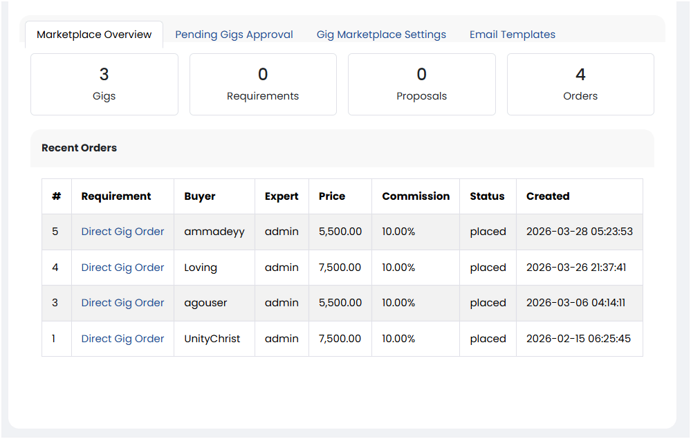 Designed for flexibility and scalability, this plugin allows admins to manage gigs, users, orders, and payments efficiently while providing a smooth experience for both buyers and sellers.